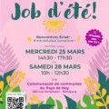 Décroche ton job d'été lors d'une rencontre éclair, 8 minutes pour convaincre ! On vous attend le : - Mercredi 25 mars de 14h30 à 17h30 - Samedi 28 mars de 10h-12h30 A la Communauté de communes du Pays de Nay, 250 rue Monplaisir 64800 Bénéjacq N'oublie pas ton CV !